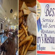 A henry's hand battered chicken fried steak smothered in cream gravy, served with two eggs any style, breakfast potatoes, and your choice of a biscuit, toast, or English muffin.